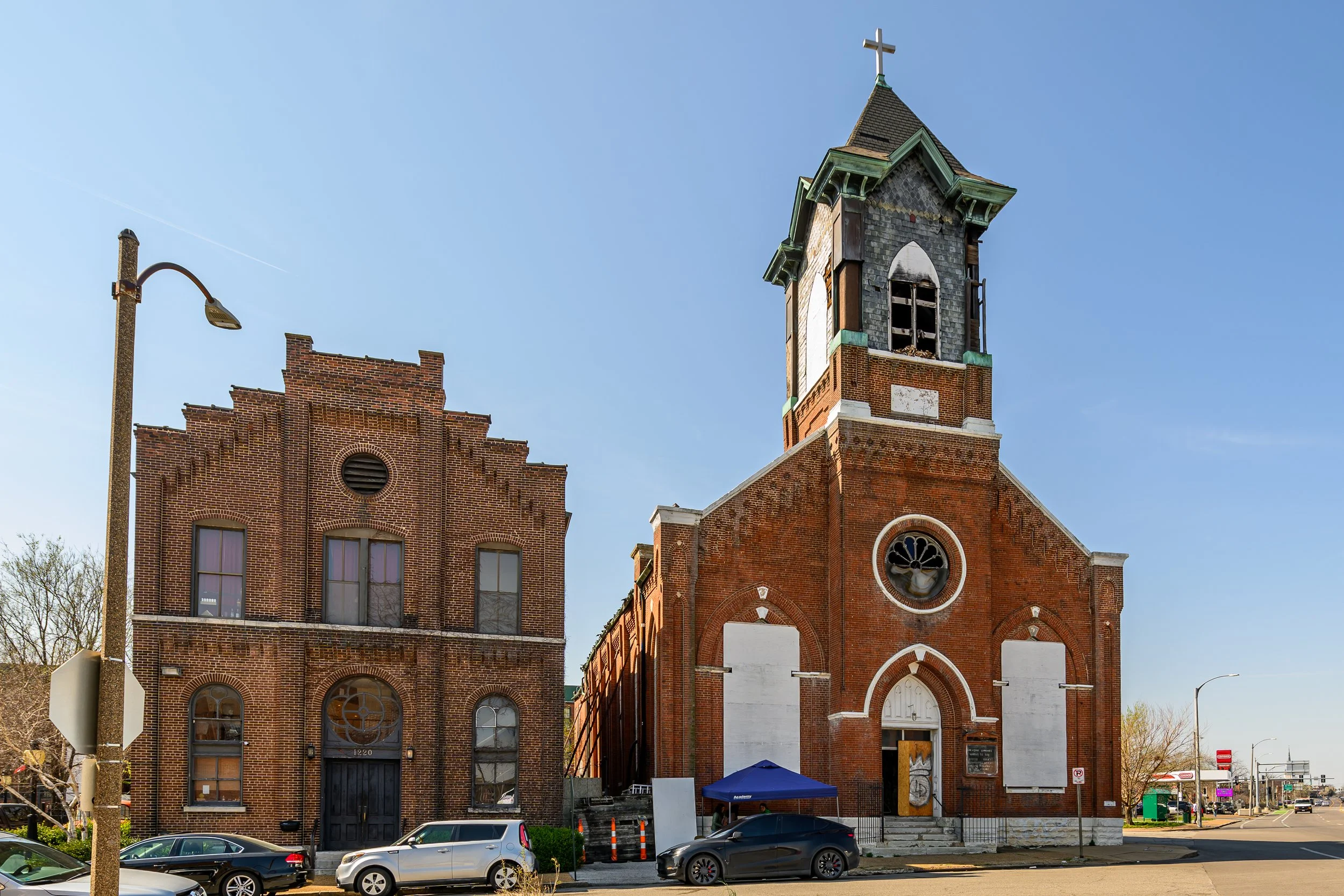 On the night of June 6, 2023, a two-alarm fire broke out at 1222 Allen Avenue. St. Louis Fire Department Captain Garon Mosby described heavy smoke and fire coming from the steeple when crews arrived at the three-story building. The building has been closed ever since and has continued to deteriorate.